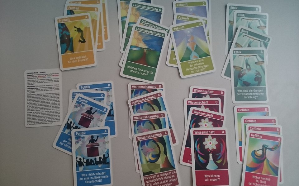 Das philosophische Freidenkerquartett eignet sich hervorragend für Diskussionsabende in den Sektionen. Aber auch im Freundeskreis oder mit Nachbarn macht es Spass. Besonders spannend ist es mit Jugendlichen zu spielen, sei es in der Familie oder mit einer Gruppe. Du lernst deine Freunde kennen, du musst nachdenken, du kannst deine Meinung äussern, du lernst von den Mitspielerinnen.