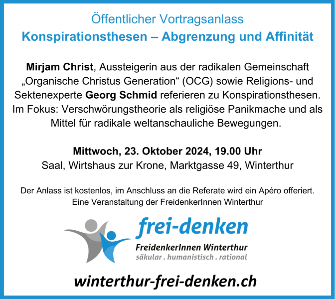 Eine Veranstaltung der FreidenkerInnen Winterthur.